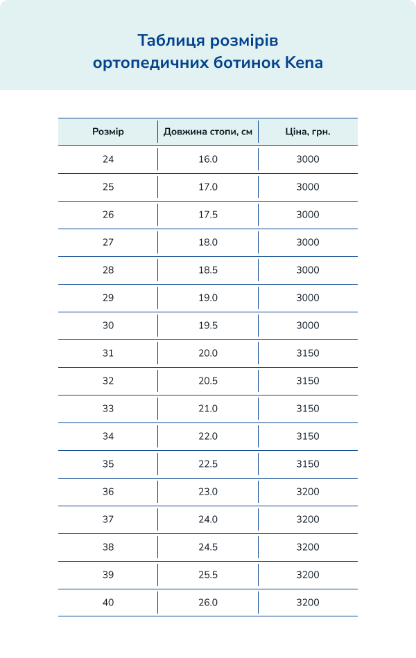 - розмір взуття від 25 до 40;